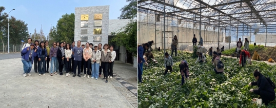 10月30日,天气晴朗,松江郊外的农场呈现出生机盎然的气息。外语学院组织数十名工会会员前往五厍开展了采摘体验活动。