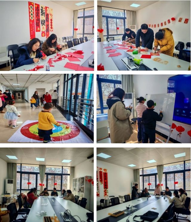 在手工体验区老师们体验了剪纸、拓印福字,在传统项目中感受浓浓的年味;在团战竞技区,大家显神通,扔沙包、投壶、蒙眼作画,样样拿手;角逐最激烈的莫过于“谁是卧底”的桌游区,各年龄段选手轮番上阵。经典项目勾起了许多老师的童年回忆,简单的游戏让大家回到了纯真年代,或摩拳擦掌,一试身手,或凝神专注,巧手翻飞,或高声喝彩,加油打气……在这轻松愉快的氛围中加深彼此的了解,增进家人般的情谊。